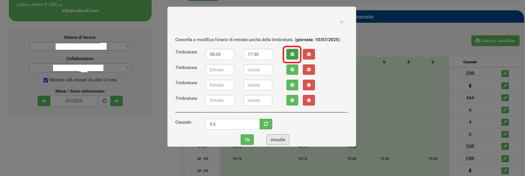 7. L'inserimento nel calendario mensile rimane comunque sempre possibile e il datore di lavoro può decidere di non considerare le timbrature ed inserire un orario diverso.